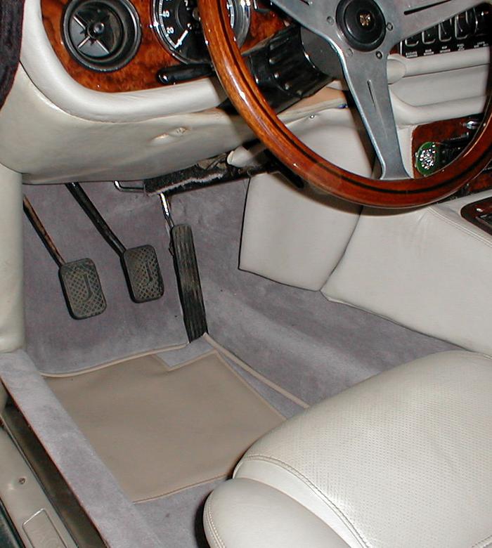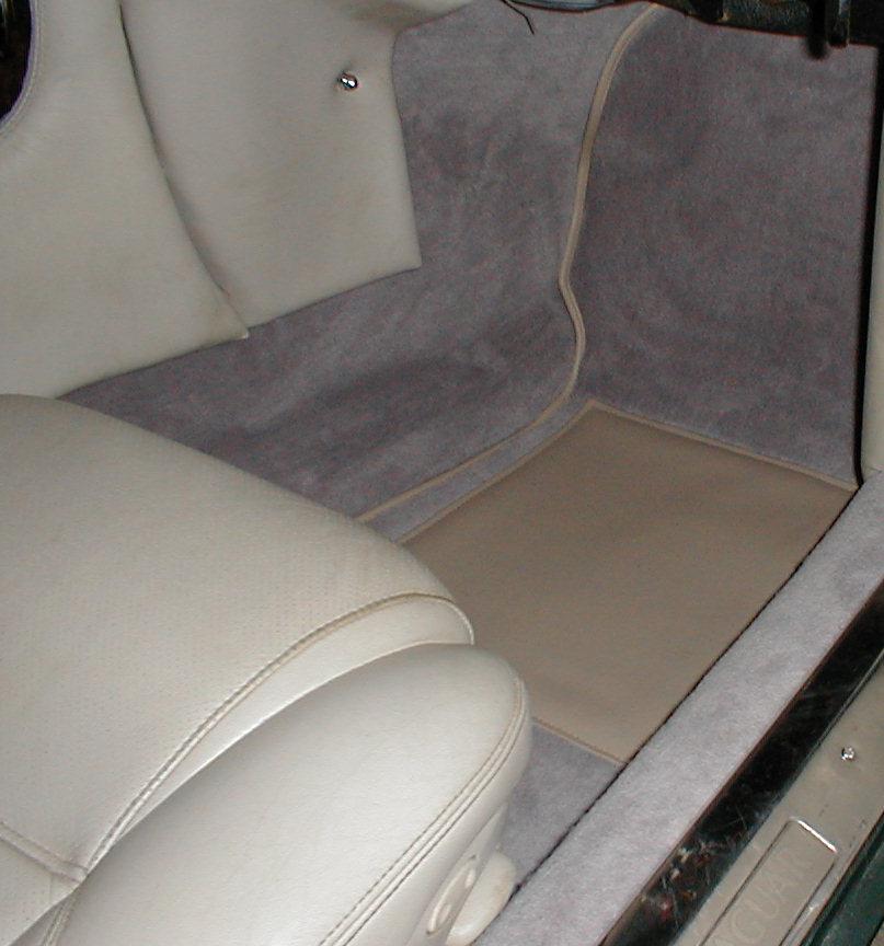 controls the starting carb. A fantastic new carpet set in grey was supplied by John Skinner in the UK. Makes a huge difference and really makes it all come together. What next? I'm waiting for late model S3 sun visors (i.e. not black) to arrive. There is one B-post left to retrim, and I've yet to really come up with a solution to the underdash panels. When all that is done, the interior is pretty much finished for this phase of development.